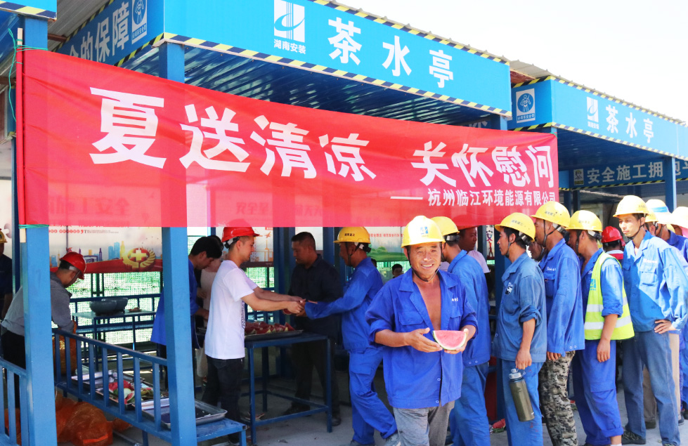 炎炎酷暑送清涼,滴滴關懷暖人心,7月24日下午,臨江公司在臨江環境能源項目施工現場組織開展“夏送清涼 關懷慰問”活動,為一線工人送去夏令品。